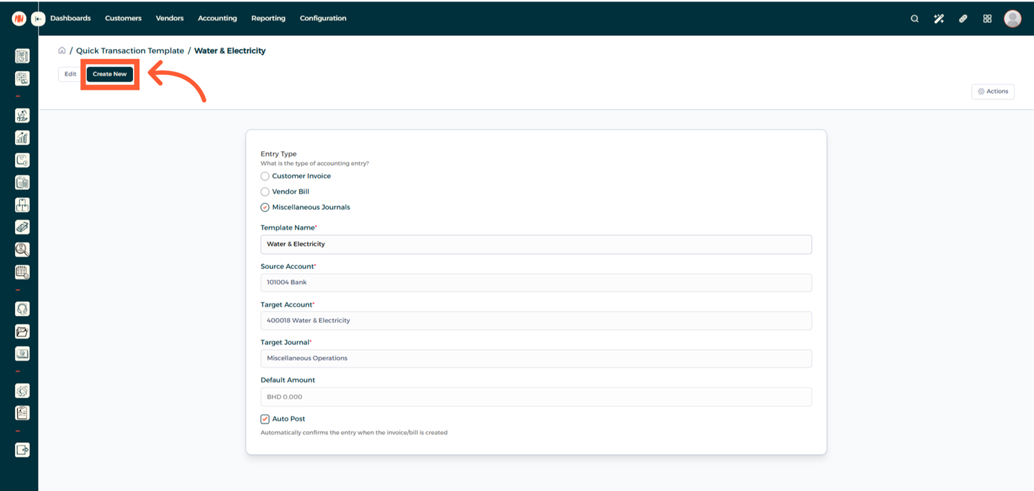 Step 2: Create a Quick Transaction Template