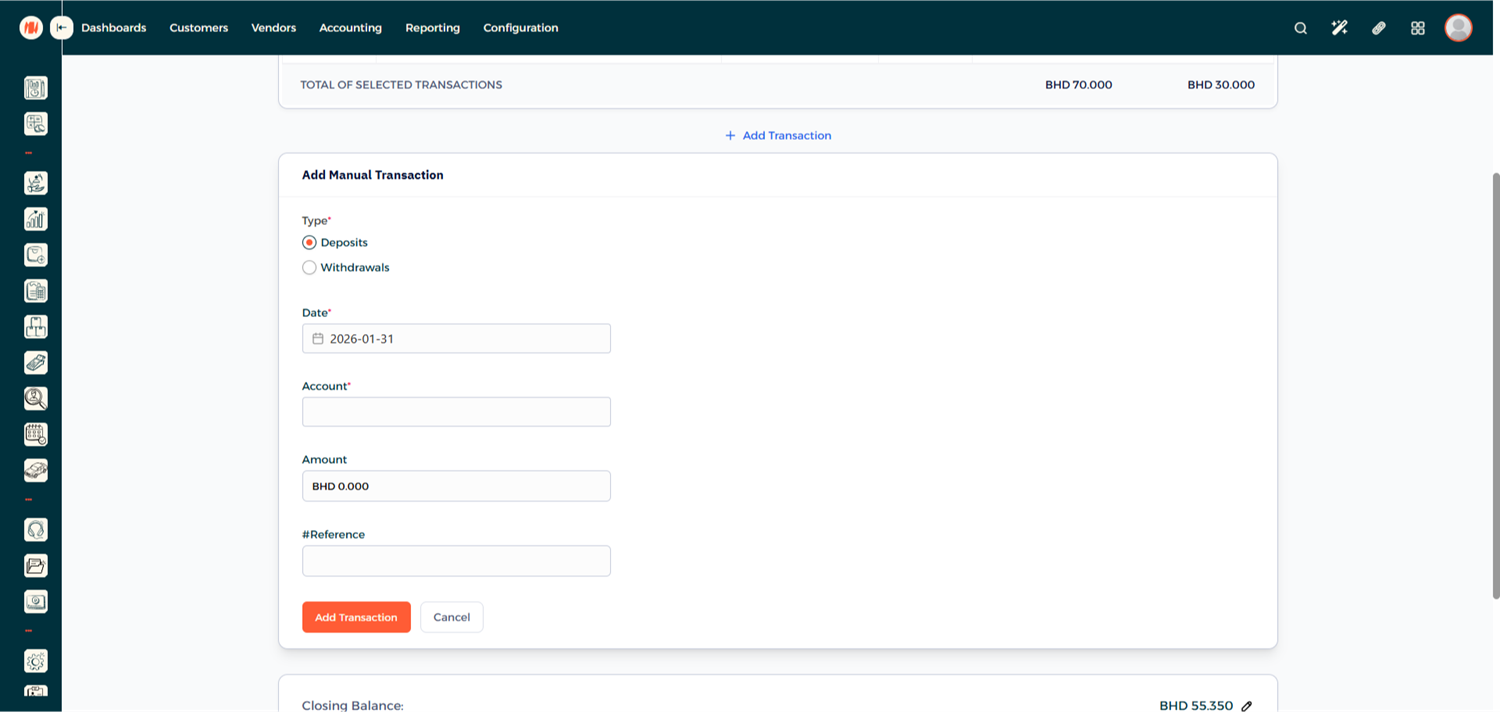 - Specify whether it is a Deposit or Withdrawal