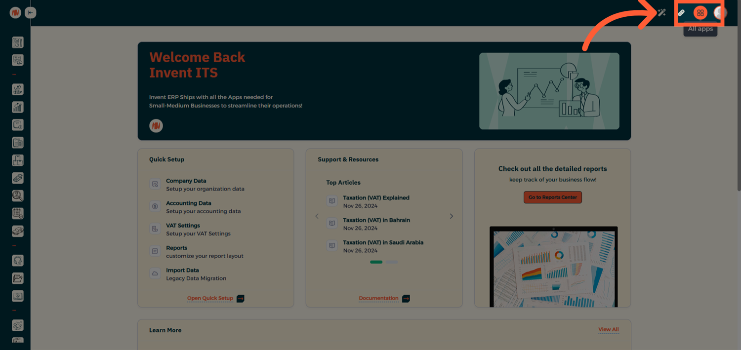 From the Homepage, click on All Apps, then navigate to the Accounting Module.