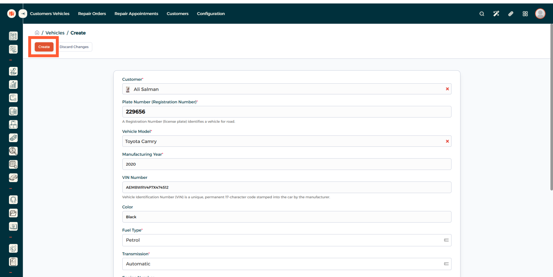 Review all the information, when everything looks correct create the vehicle. That's It! you have successfully created a vehicle in Invent ERP.