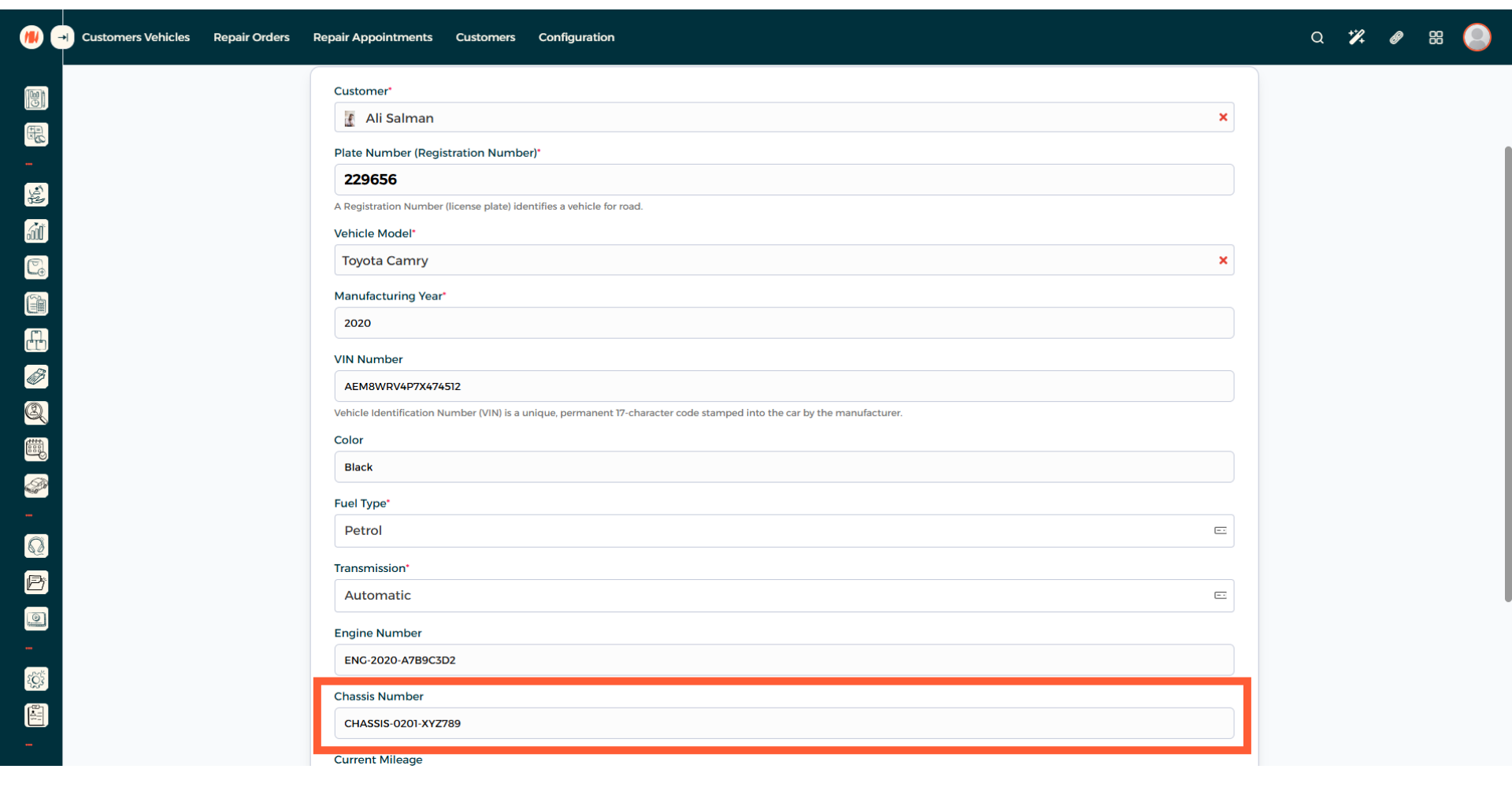 Step 12: Enter Chassis Number
