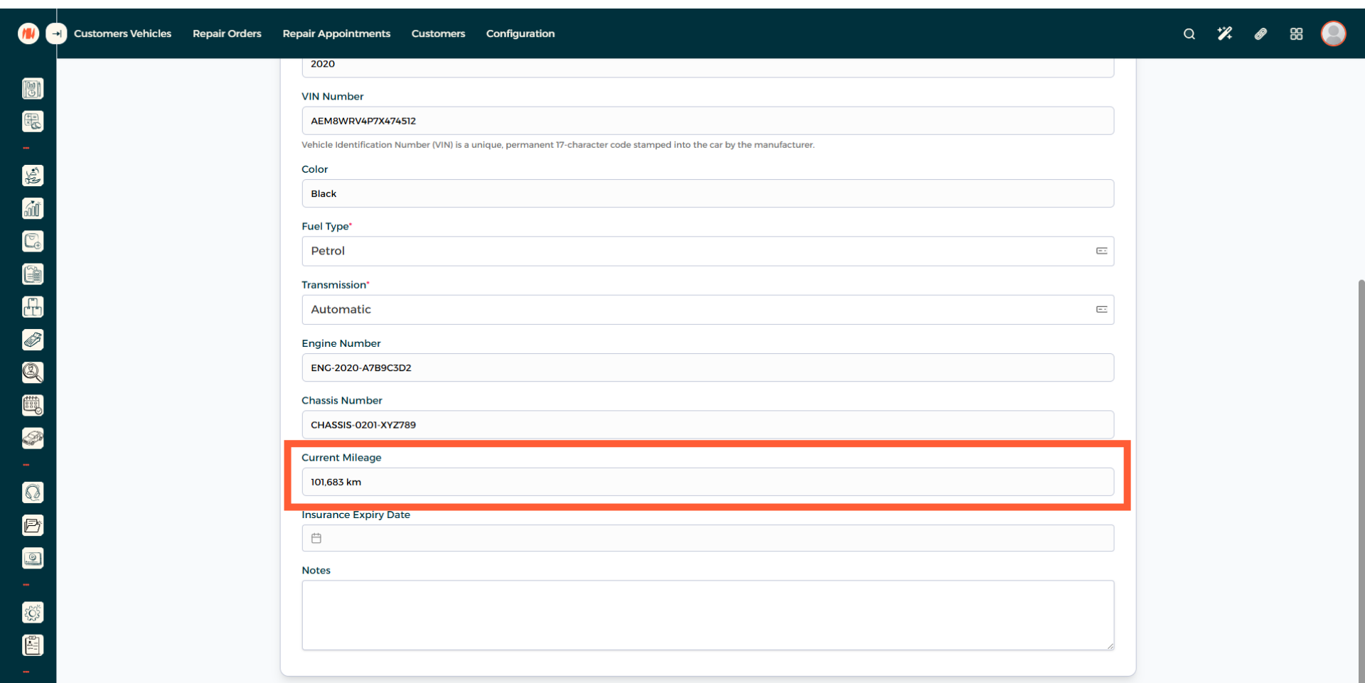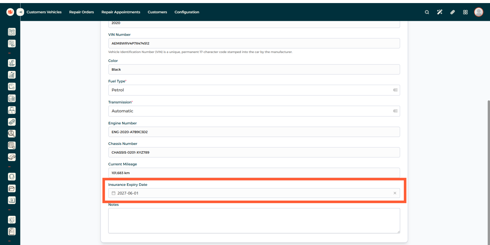Step 14: Input Insurance Expiry Date
