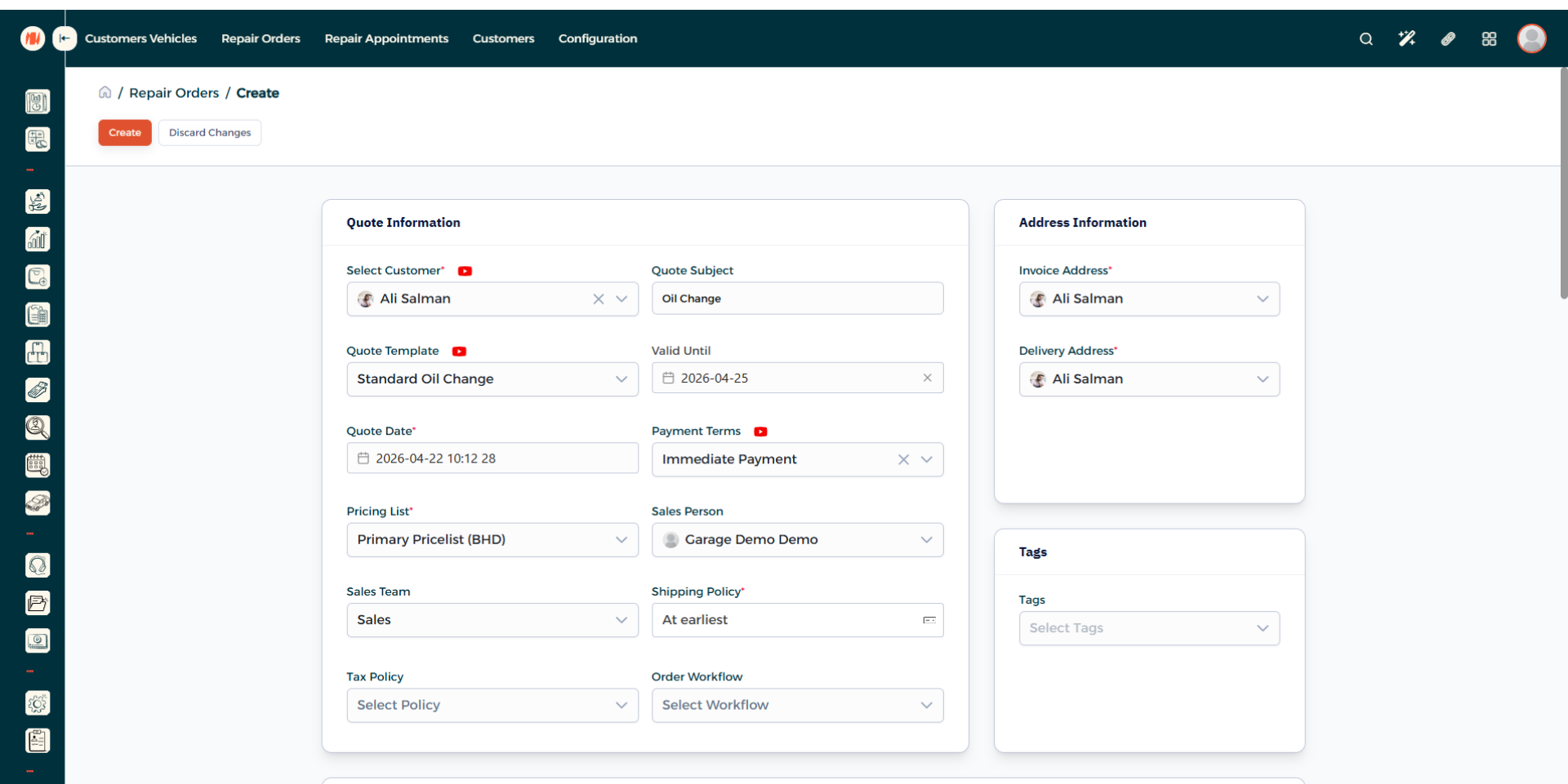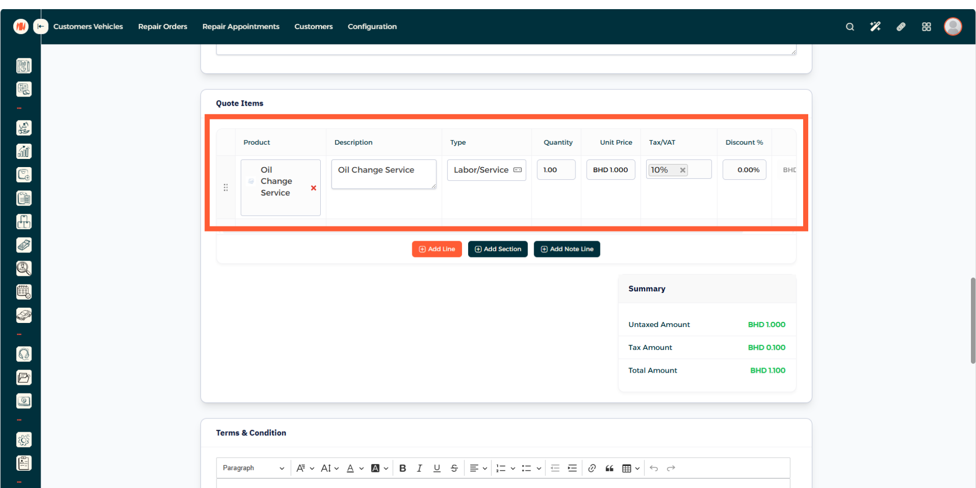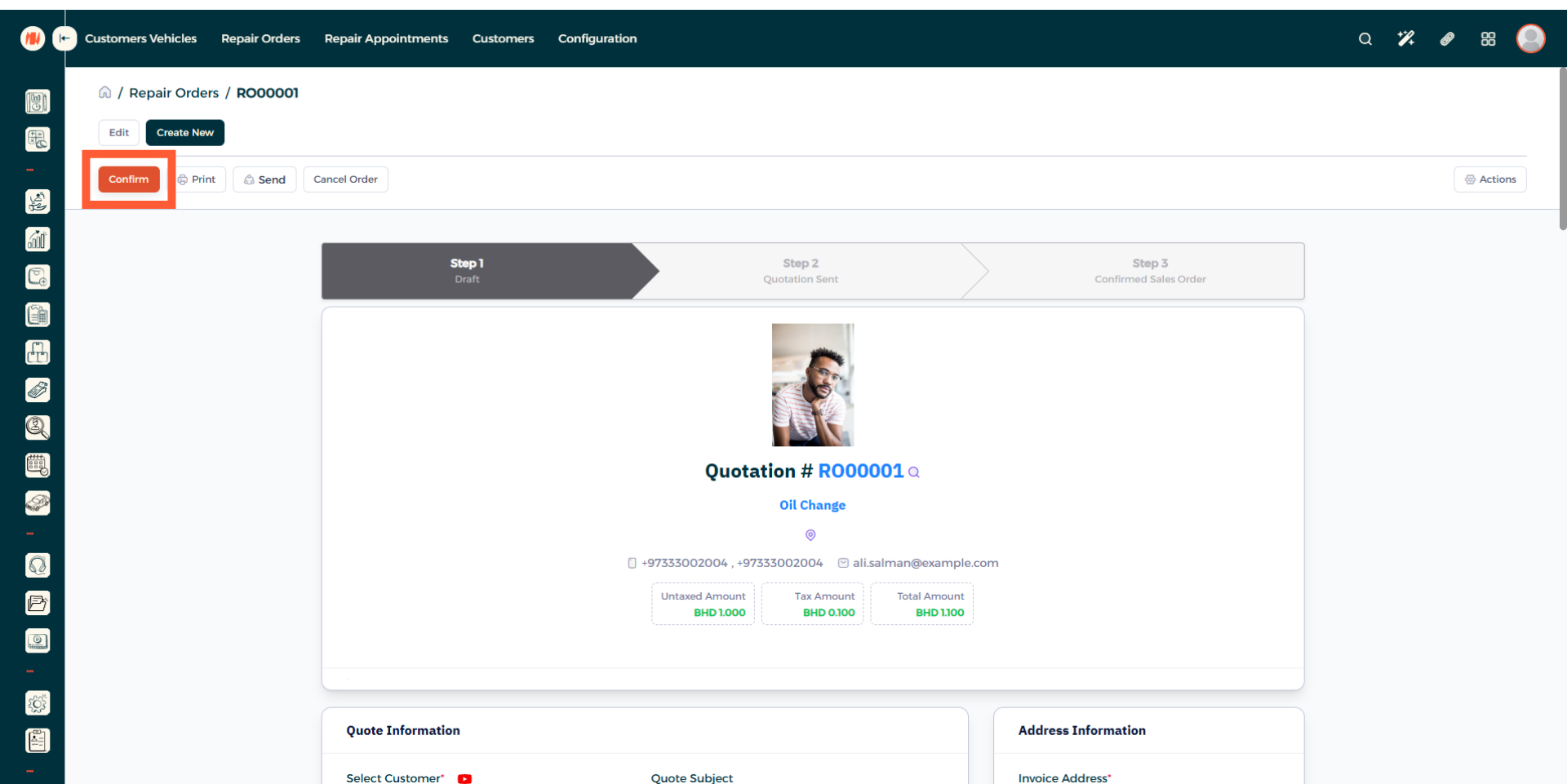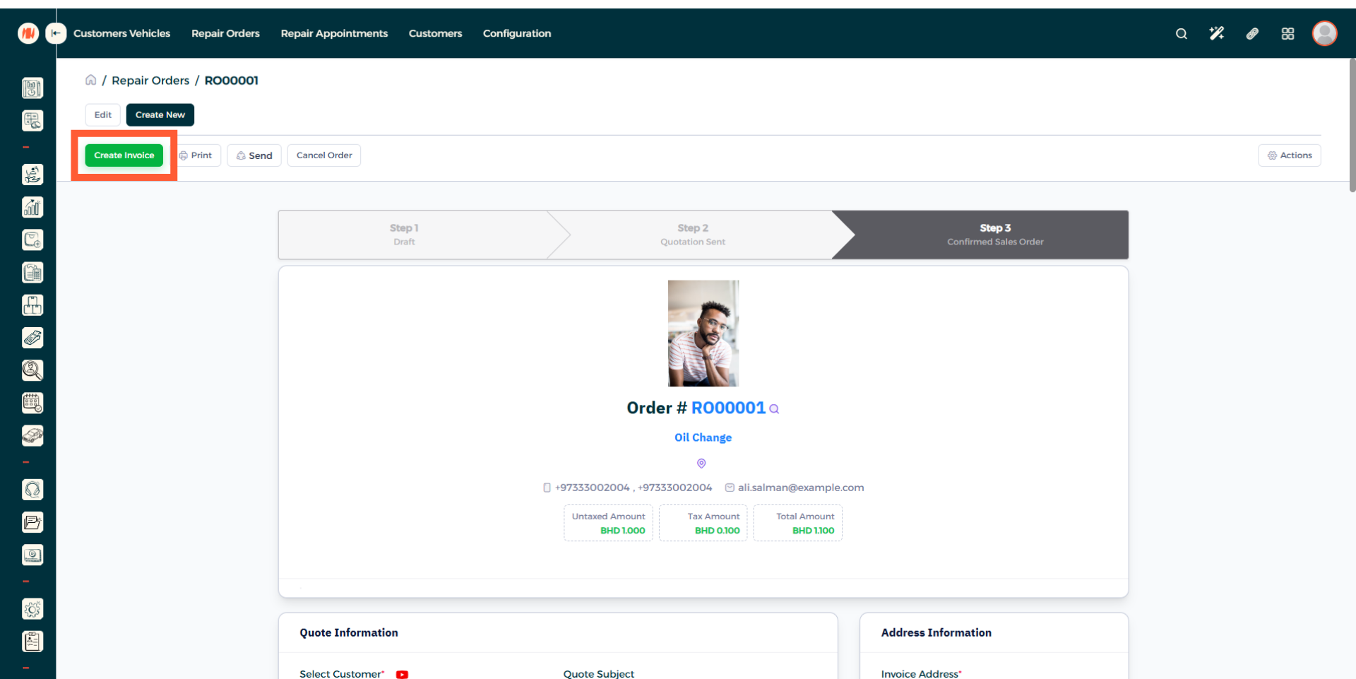 A: It's simple, just create a repair order, add parts and labo needed to complete the job and then the total will be showcased automatically.