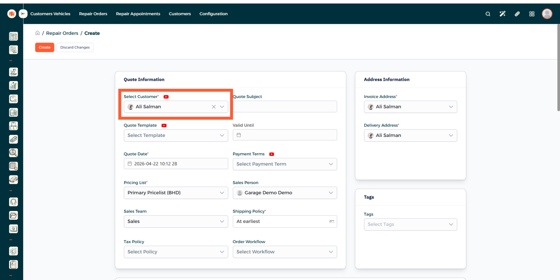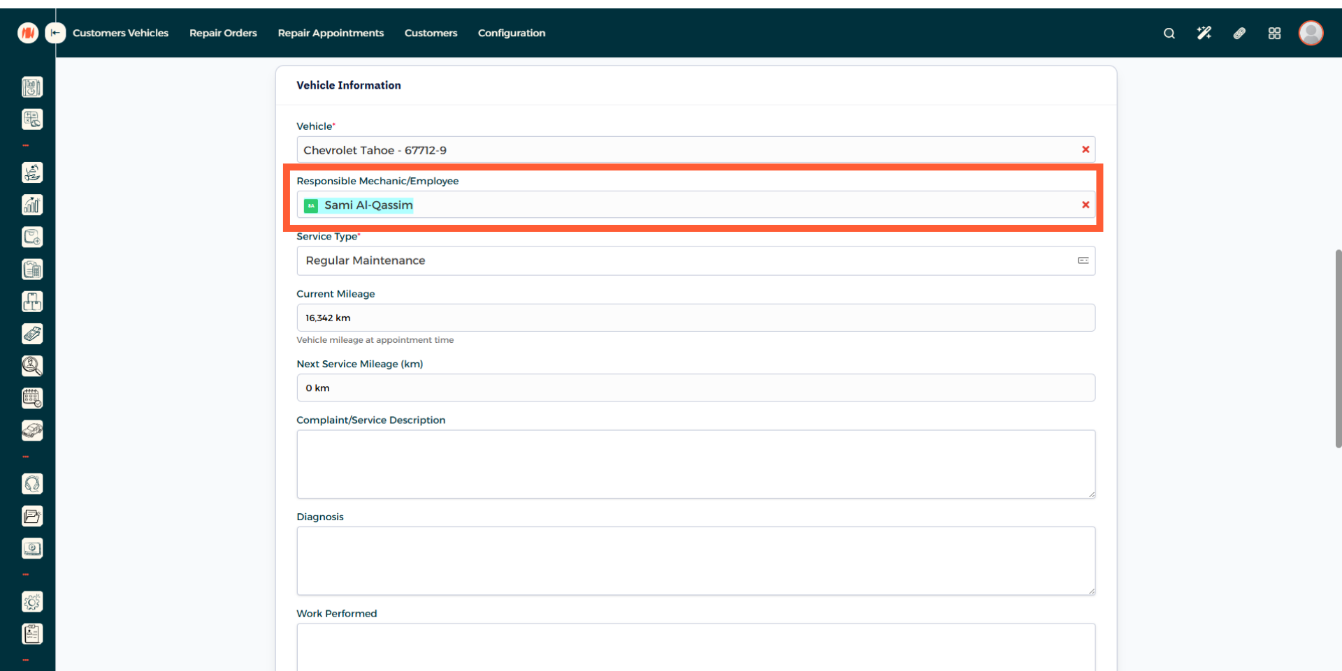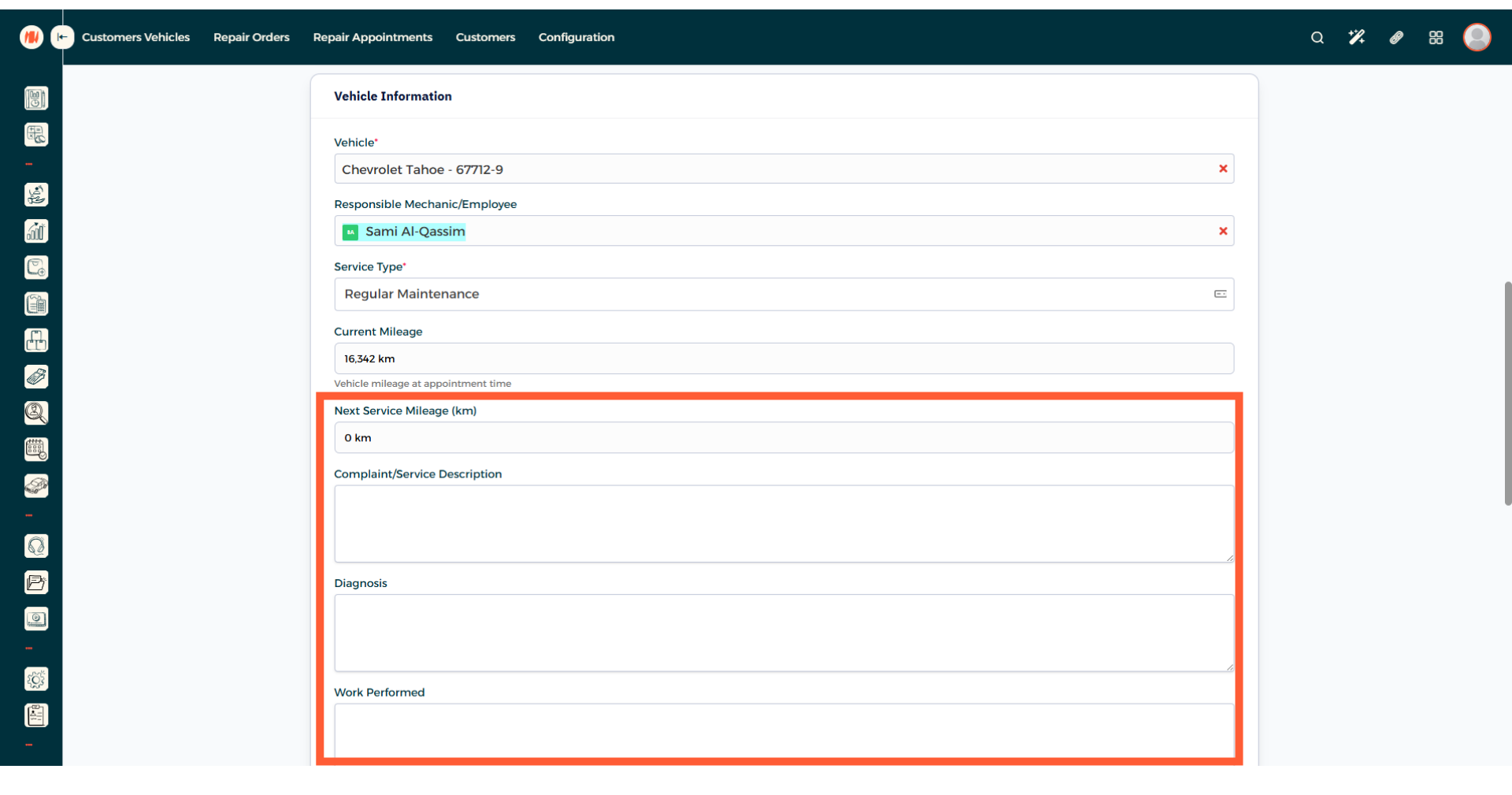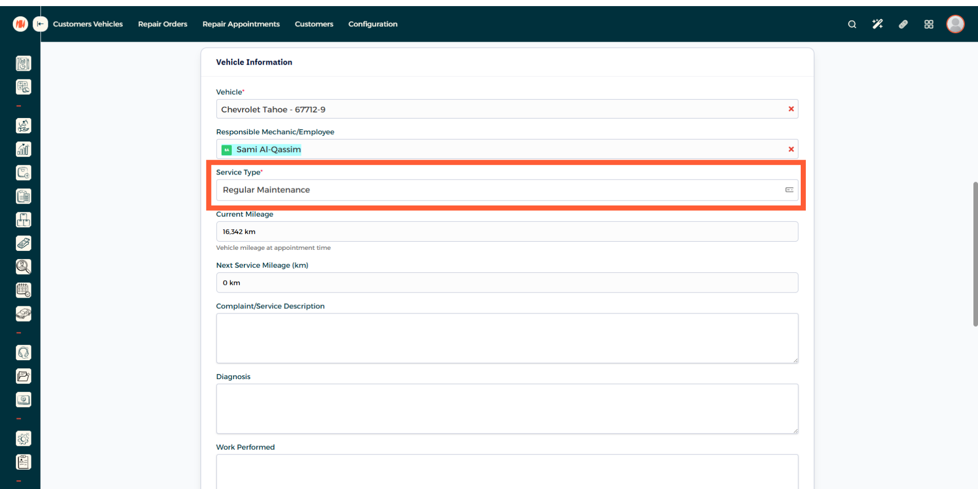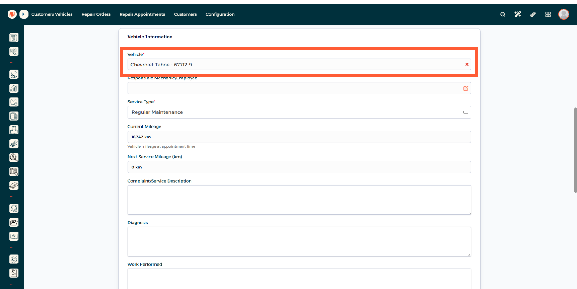This field will be filled automatically based off the customer you chose. but if the customer has multiple vehicles, select the correct one.