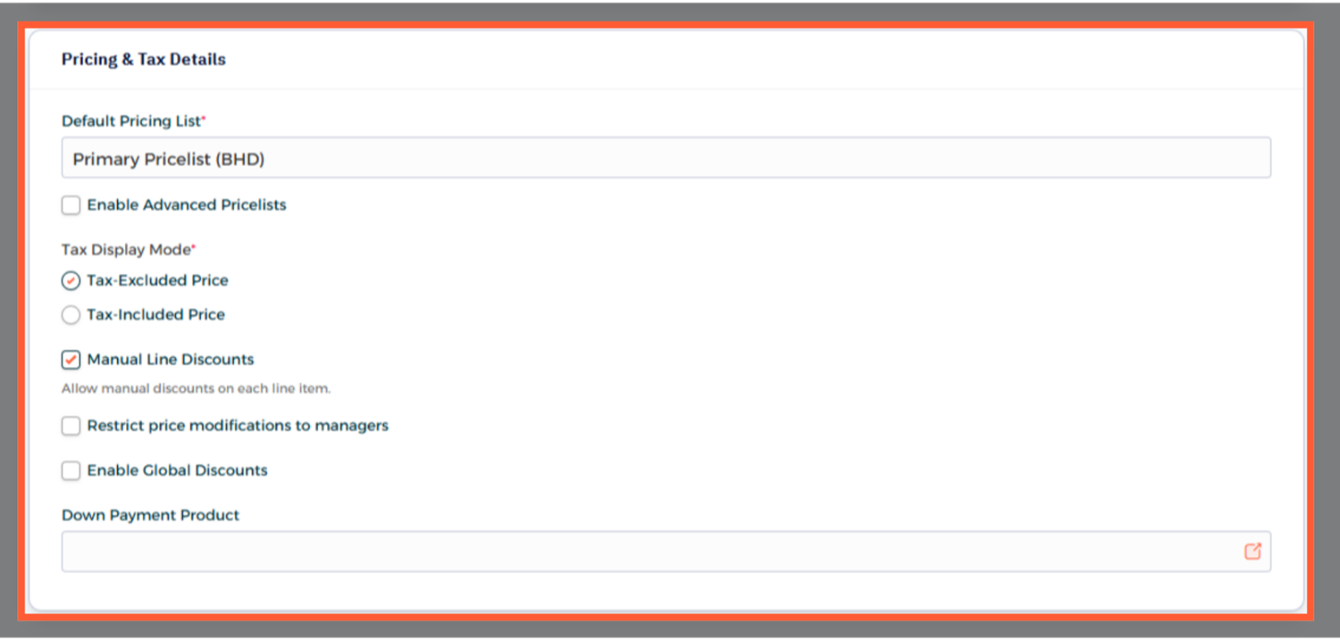 • Default Pricing List: Set the default price list that the POS will use for all products and transactions.