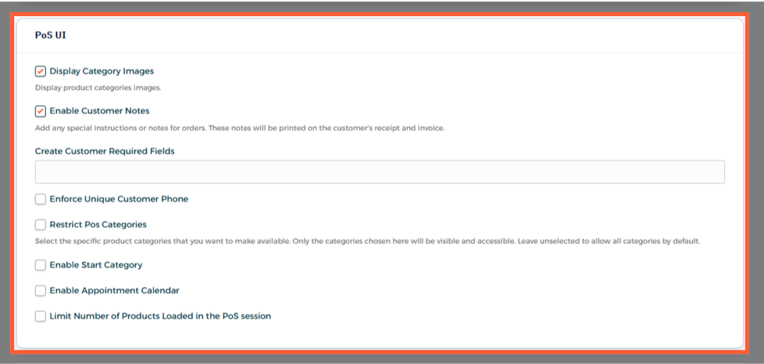 • Display Category Images: Choose whether to show or hide product category images in your POS.