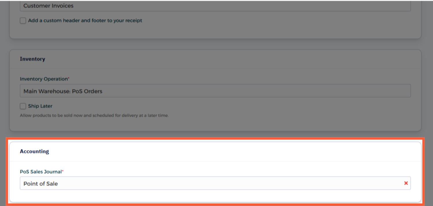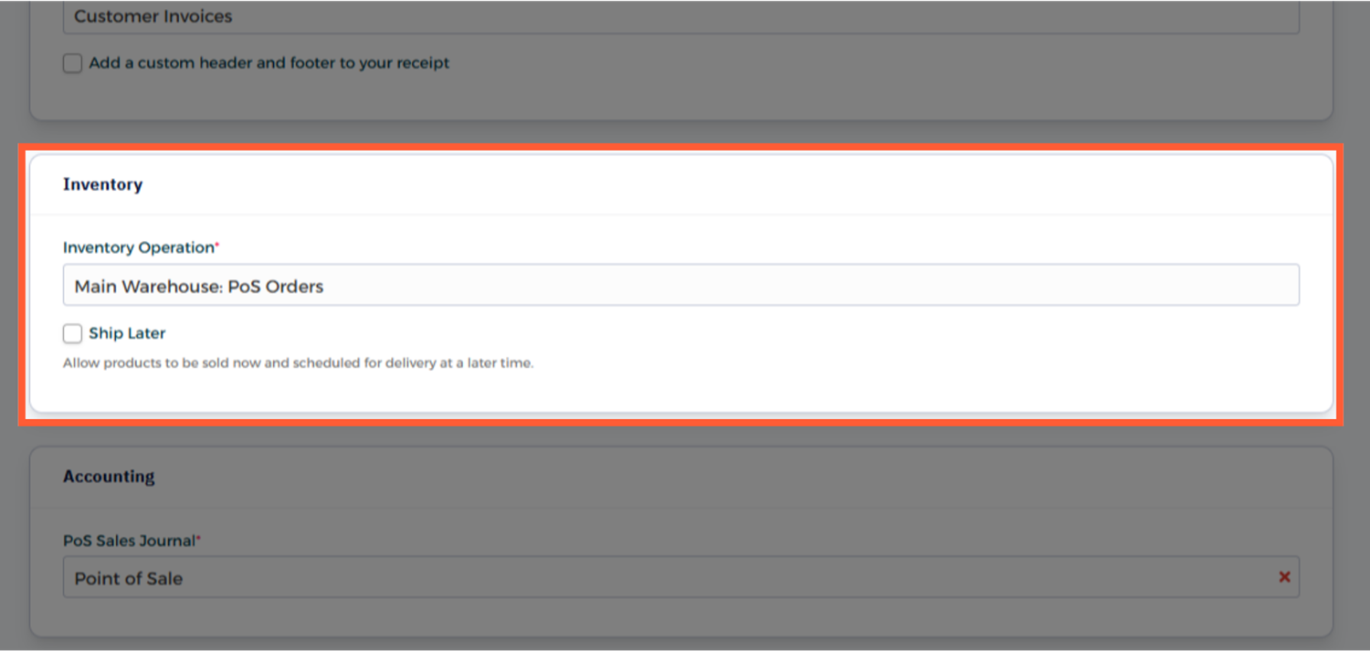 • Inventory Operation: Select the inventory operation that will be linked to this POS for managing stock movements.