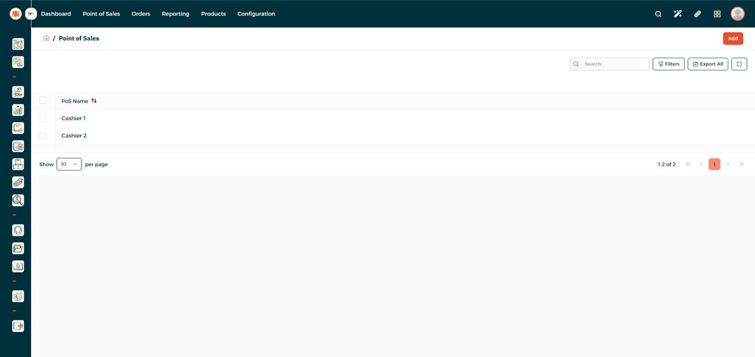 In the POS Configuration page, you will be able to see a list of existing POS in the system.