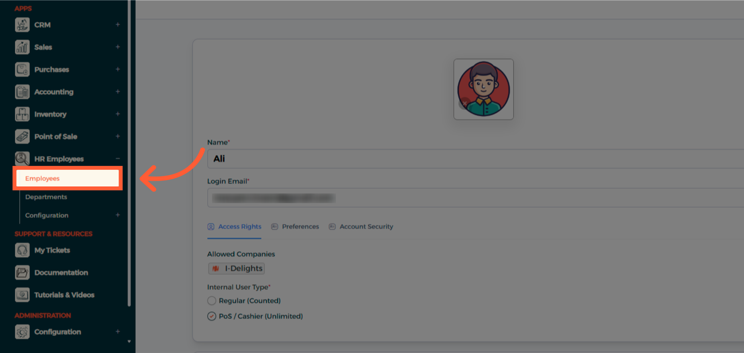 Third: Assign the Employee to a POS Configuration